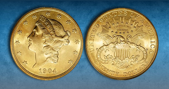 The $20 Liberty Type II is .9675 ounces of pure gold — almost one full ounce of gold in every coin.