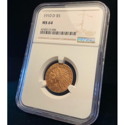 1910-D $5 Indian Gold MS64 NGC