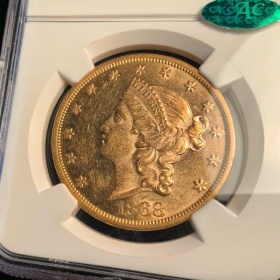 1868 $20 Liberty AU58 CAC NGC