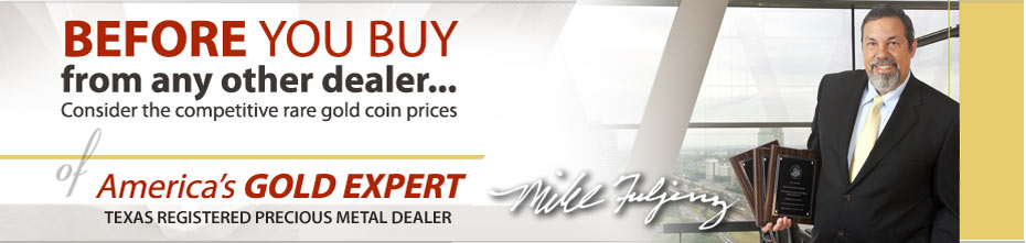 Common-date coins are necessary for your coin collection, but paying extra for a far rarer coin is often well worth it, especially for high-grade, better-date coins. America's Gold Expert, Dr. Mike, is noted for his competitive prices on hand-picked mint-state, common-date rare gold coins. When considering rare "key" dates, you need Mike's expertise on your side, since small differences in grade and relative rarity can multiply the value of a single coin.