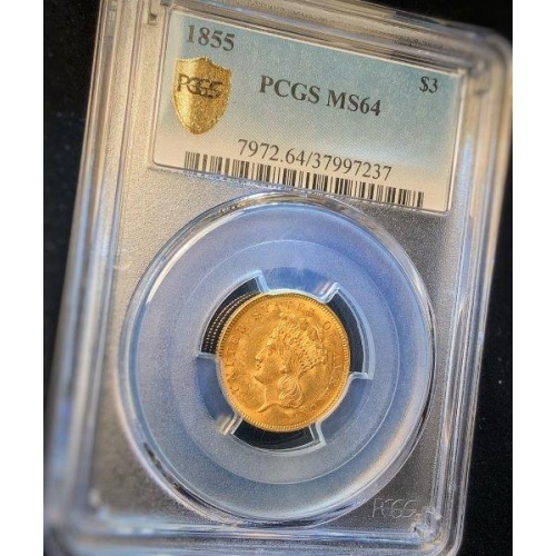 1855 $3 Princess MS64 PCGS