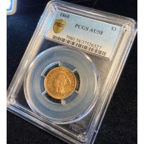 1860 $3 Princess AU58 PCGS