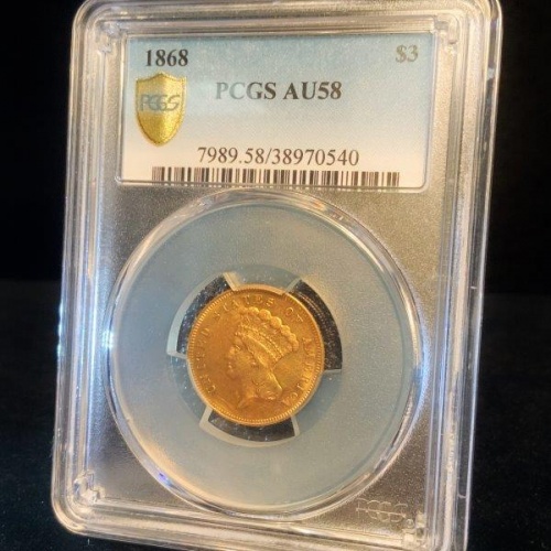 1866 $3 Princess AU58 PCGS