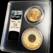 1856-S $20 Liberty SSCA AU58 No Serif-Tilted S PCGS