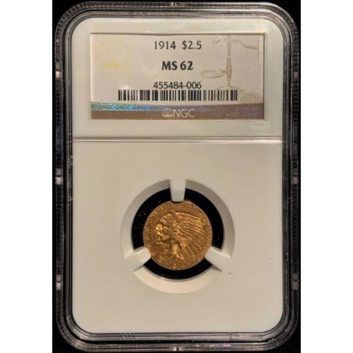 1914 $2.50 Indian Gold MS62 NGC